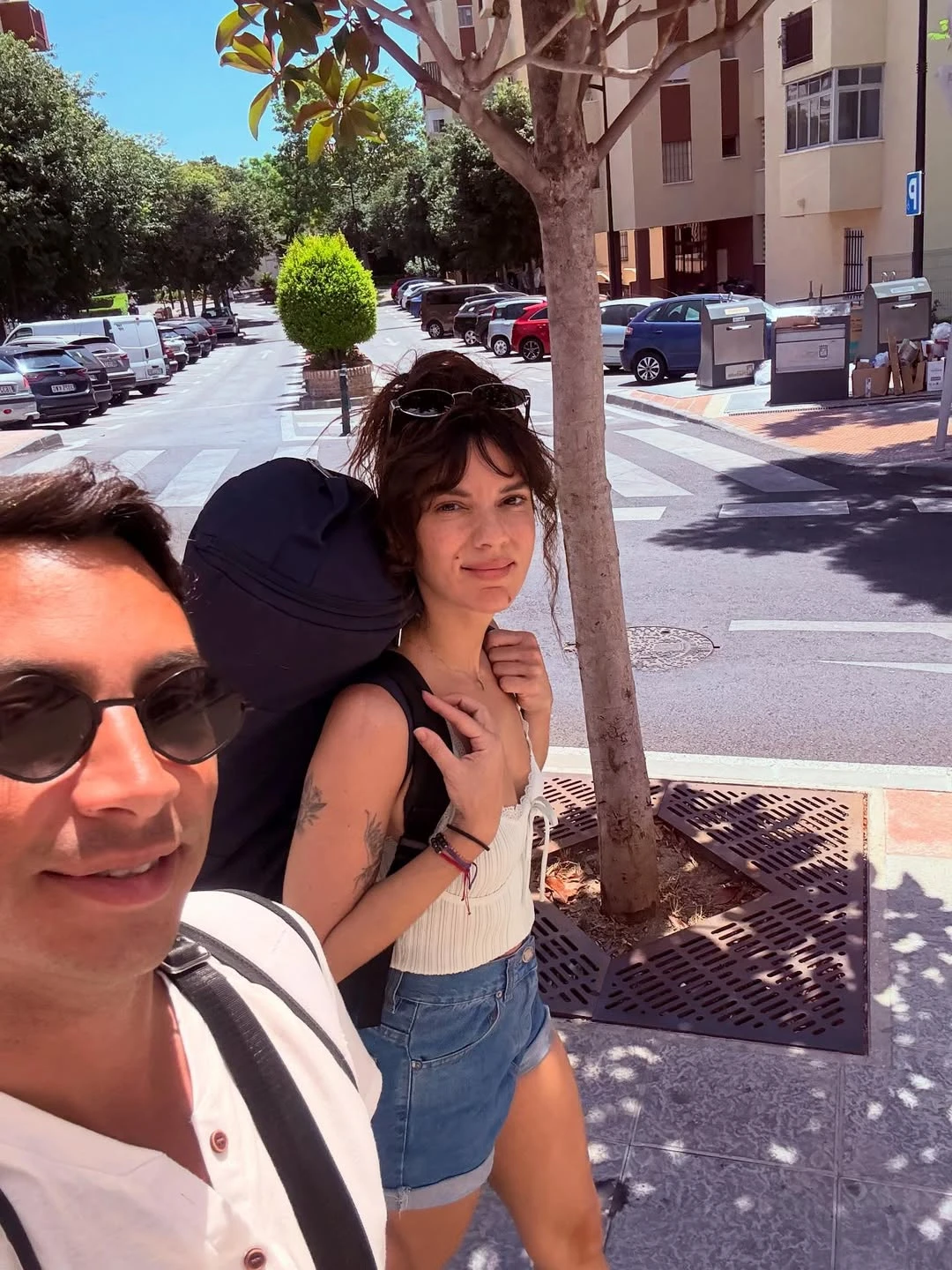 Pero el verdadero encanto de España se reveló en sus pintorescas callejuelas. Accardi se dejó seducir por la arquitectura tradicional, los muros encalados y los balcones floridos. Una de las fotografías la mostró en un callejón adoquinado, rodeada de macetas con flores y edificaciones blancas con detalles en madera y rejas forjadas.