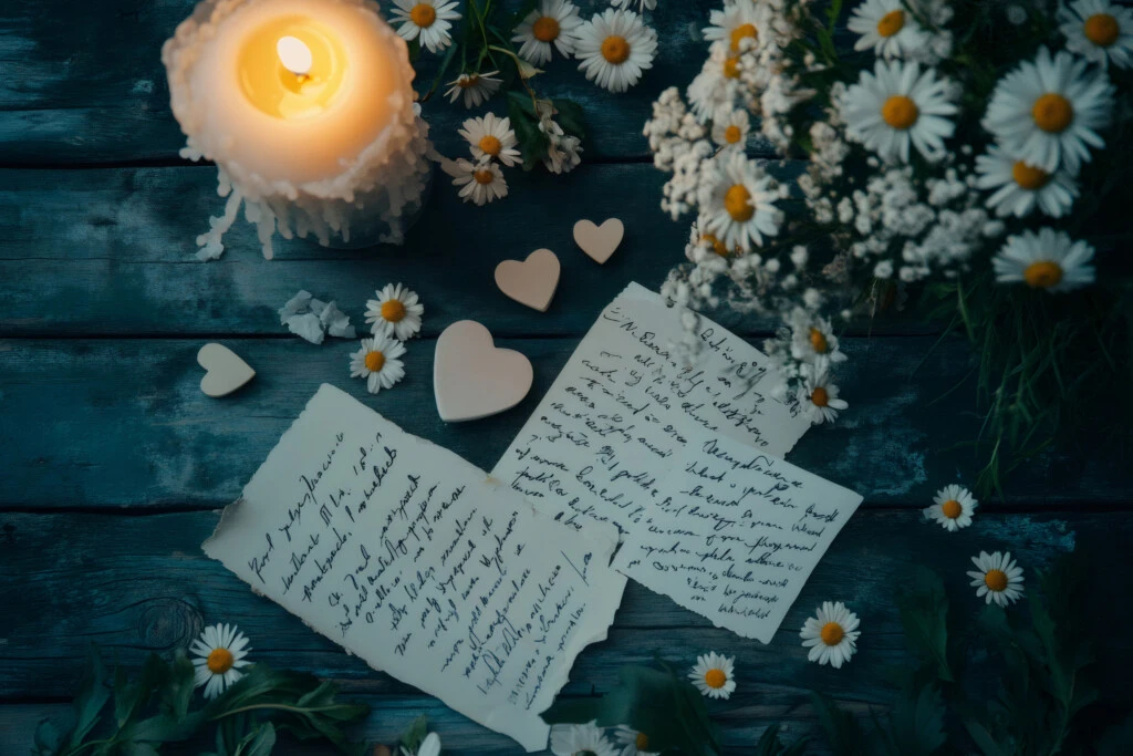 Colocar el papel de intenciones junto a un vaso de agua limpia o flores frescas, símbolo de renovación.
