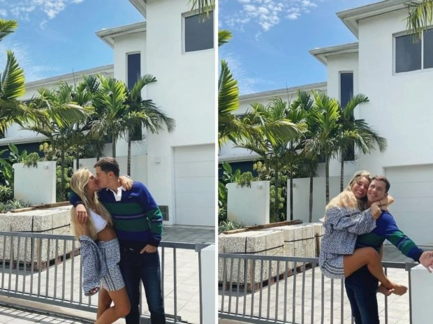 En el posteo se los ve posando felices en su nuevo hogar de dos pisos con paredes blancas y un enorme jardín en el frente. Sonrientes y a los besos, la pareja apuesta fuerte a su historia de amor que es seguida por sus fanáticos de diferentes partes del mundo.