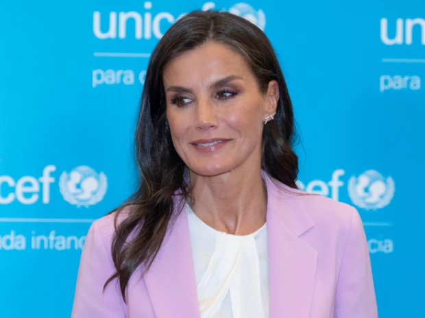 Para la entrega de los Premios UNICEF España, que se celebró en el Consejo Superior de Investigaciones Científicas en la calle Serrano de Madrid y contó con Sara Carbonero, entre otras invitadas, la mujer del rey Felipe VI deslumbró con un traje en tono rosa pastel que viraba al malva.