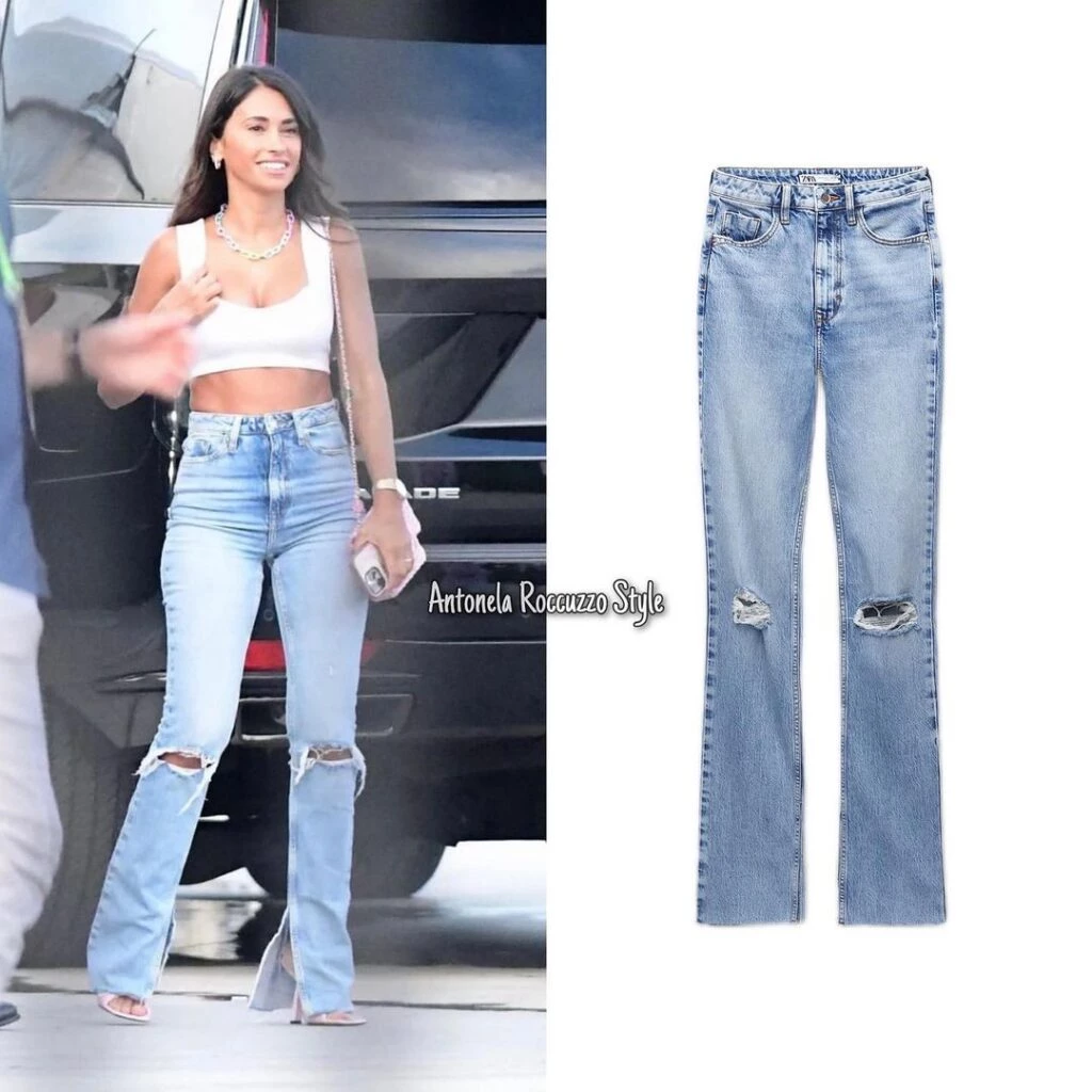 En sintonía con su primera aparición oficial como la primera dama del Inter Miami, Antonela volvió a escoger un look effortless chic. En esta oportunidad, Roccuzzo lució unos vaqueros muy accesibles de Zara que rondan los 50 dólares.
