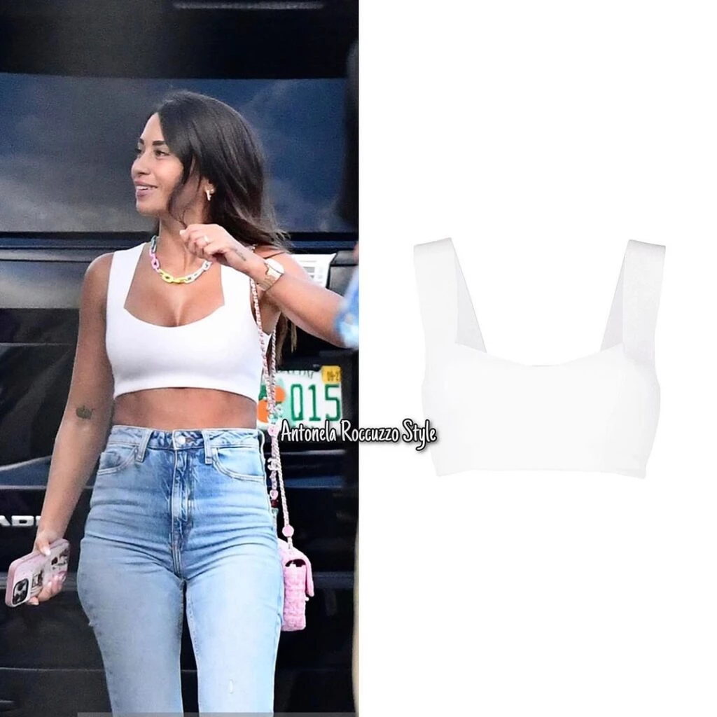 Según la cuenta de Instagram dedicada al styling de Antonela, @antonelaroccuzzo.style, la mamá de Thiago, Mateo y Ciro Messi, lució un Top corset con tirantes de la marca Bershka de tan solo 12.99 doláres.