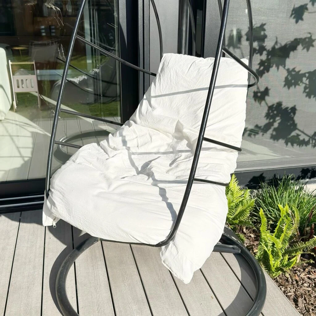 La hamaca de pie móvil y colgante de hierro es otro de los ítems deco que la modelo decidió sumar a su casa para descansar y es, sin dudas, uno de los elementos deco más utilizados en los últimos años.