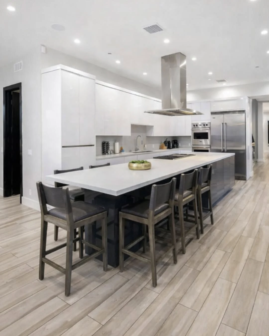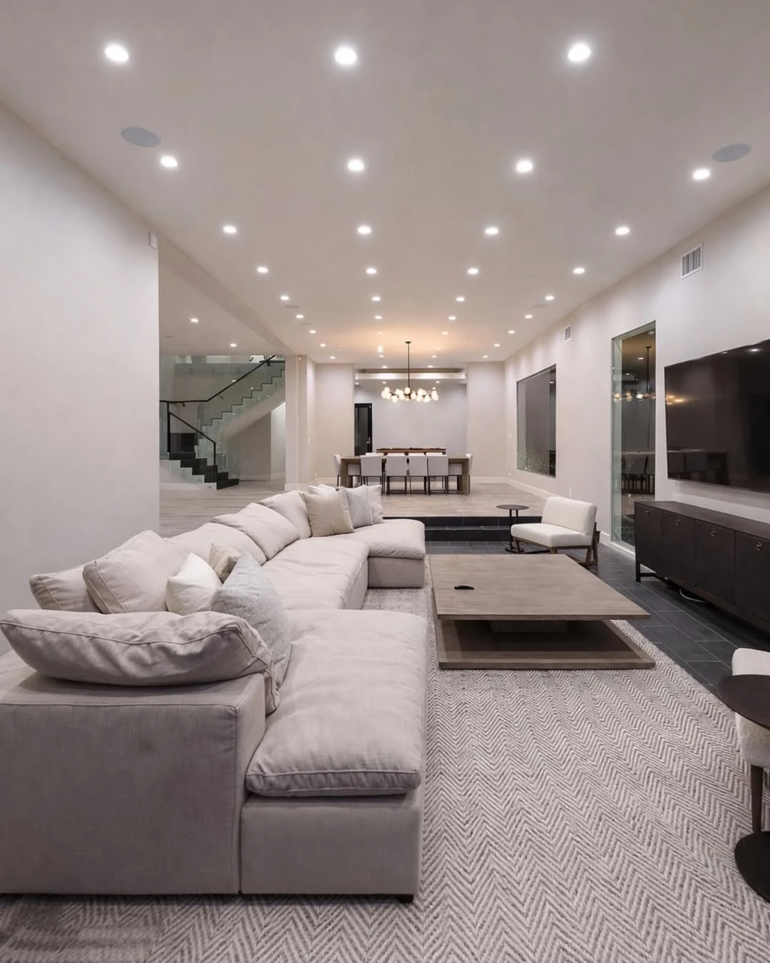 En términos de interiorismo, la residencia apuesta por una estética minimalista y luminosa, con paredes blancas, grandes ventanales y múltiples salas de estar que favorecen la circulación de luz natural.