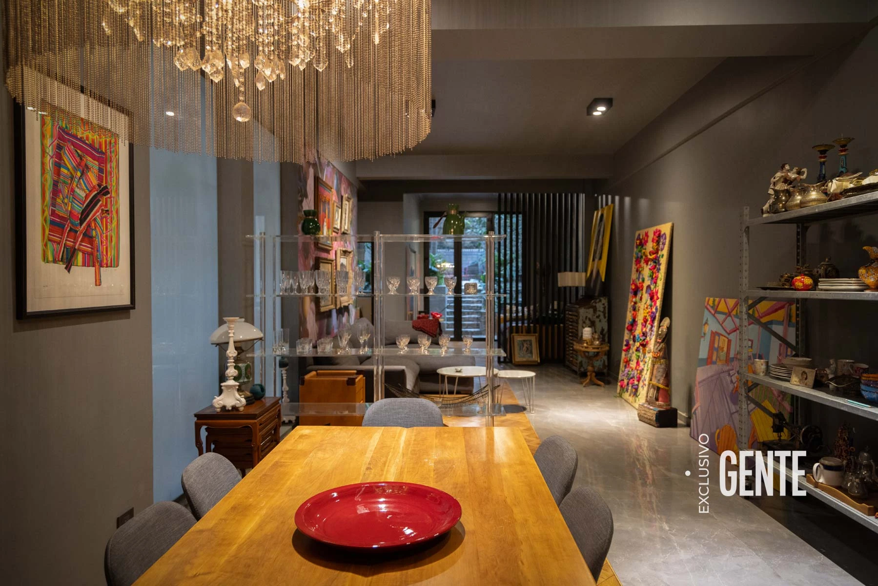 “Todo lo que se ve en casa tiene que ver con viajes y regalos que me han hecho, todo tiene un porqué. Desde el cuadro de Marta Minujín hasta la máquina de coser que era de mi abuela”, explica el diseñador, hoy uno de los participantes del Cantando 2024.