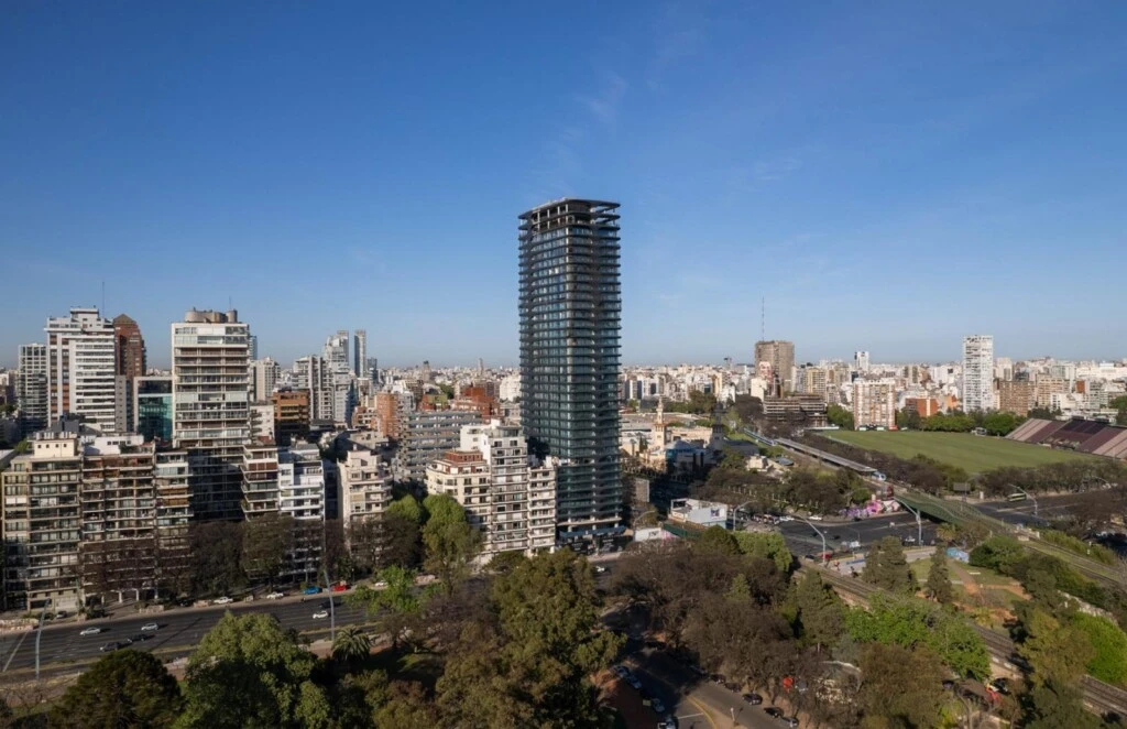 Es que sus ventanales de tres metros de piso a techo y sus balcones curvos miran directamente al pulmón verde más aristocrático de Buenos Aires.