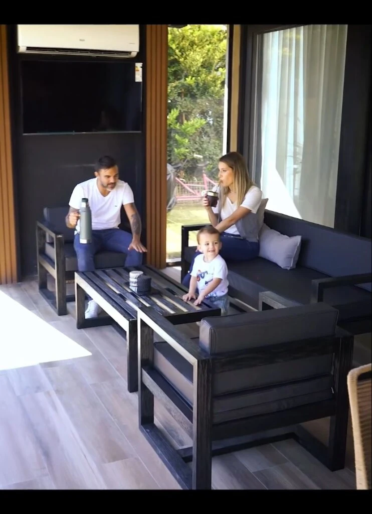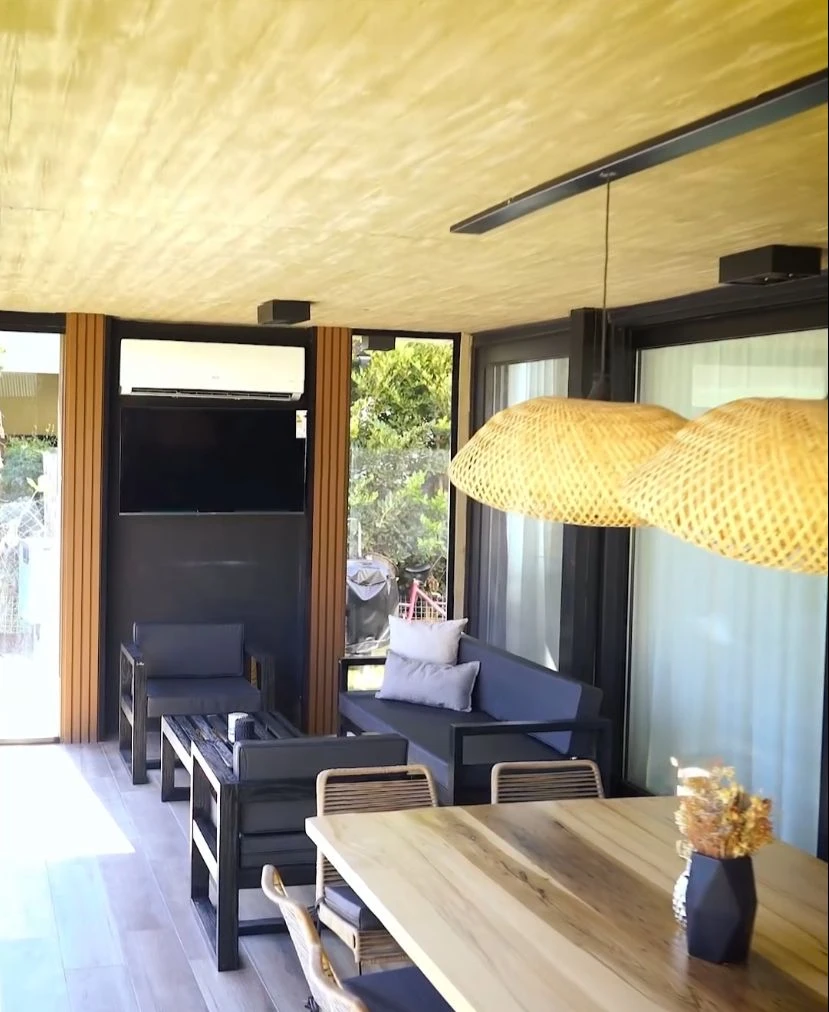 Este espacio fundamental cuenta con un televisor en uno de los costados junto a un aire acondicionado que sirve para los días en los cuales con el cerramiento este sector se convierte en otra habitación más.