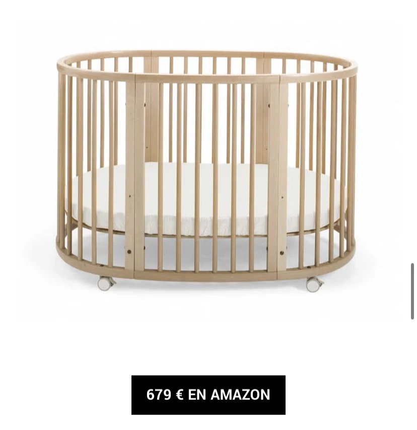 Para el mobiliario, la pareja eligió la marca Stokke, especializada en productos para bebés y fundada en Noruega en 1932. La cuna es el modelo Sleepi, de diseño ovalado y barrotes de madera de haya, con ruedas incluidas para moverla fácilmente de ambiente. Su valor es de 538 euros (alrededor de 1.100.000 pesos argentinos), aunque existe un pack más completo por 679 euros que suma colchón, piezas de ampliación y barandillas extraíbles para acompañar el crecimiento del niño hasta los 10 años.