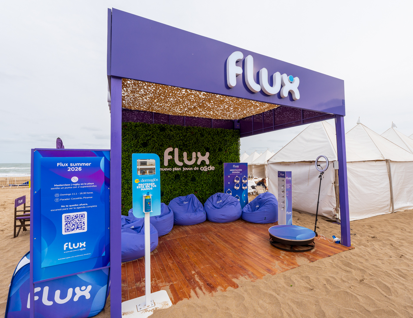 El segmento joven contó con un espacio exclusivo a través de Flux, el plan de OSDE diseñado para las nuevas generaciones. En los paradores y Spots Flux, la experiencia fue integral: hubo zonas de relax y meditación guiada para desconectar de la rutina, espacios funcionales con docks de carga para dispositivos y áreas de descanso, y propuestas de interacción como el spinner 360, que se convirtió en uno de los grandes atractivos para capturar y compartir los mejores momentos del verano.