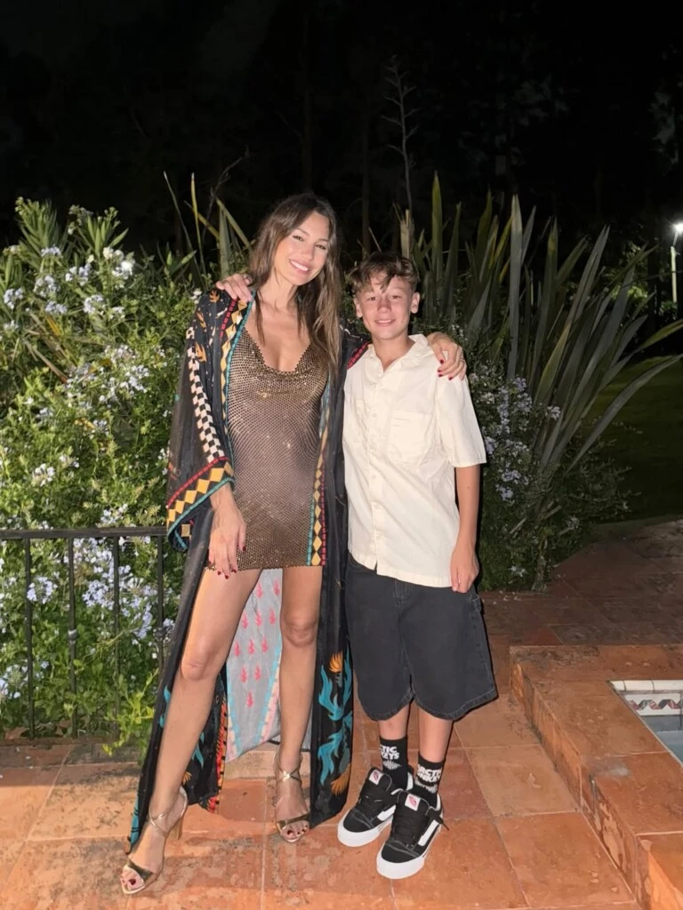 Para quienes prefieren una opción más audaz, Pampita apostó por un mini vestido dorado de tejido metalizado, con espalda descubierta y efecto joya. Ceñido al cuerpo y con una textura que capta la luz, este look retoma el espíritu festivo clásico pero lo actualiza con una silueta limpia y sensual.