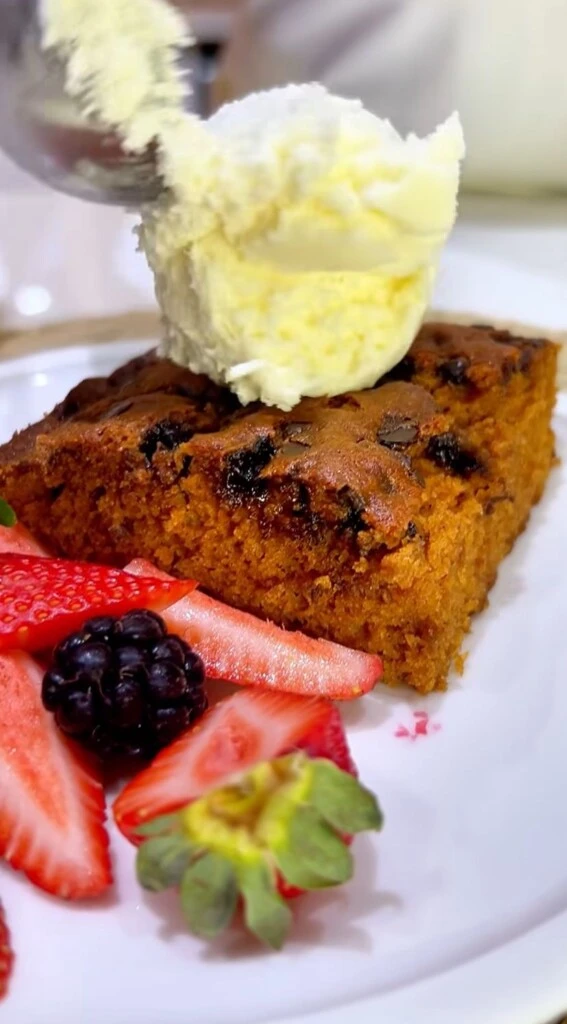 - Dejar entibiar antes de cortar y, si se desea, servir con una bocha de helado.