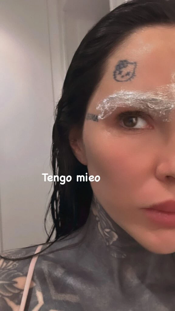 Primero, la hija de Marcelo Tinelli apareció en sus historias para contar que estaba por hacerse un cambio de imagen, aunque sin adelantar mucho. Después confesó: "Tengo miedo", y se mostró en un primer plano con solo una ceja completamente cubierta.