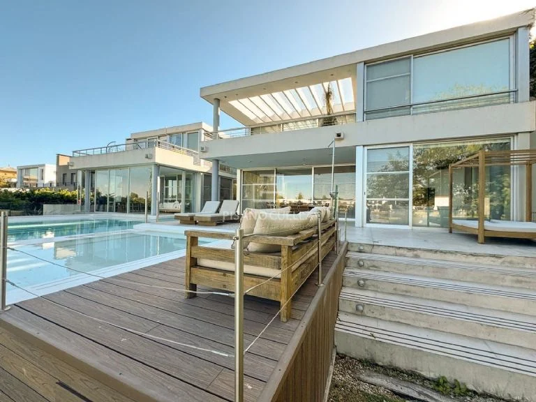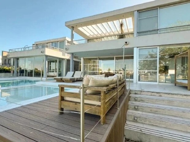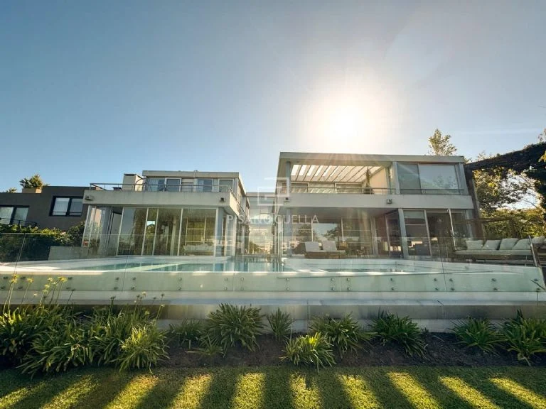 Ubicada en Benavídez, en una de las zonas más cotizadas del norte bonaerense, la propiedad se levanta sobre un terreno de aproximadamente 1.800 metros cuadrados, con cerca de 800 metros cubiertos distribuidos en amplios y luminosos ambientes. Desde el frente, la fachada de líneas modernas y sobrias anticipa lo que se despliega puertas adentro: espacios pensados para una vida familiar numerosa, pero también para recibir y deslumbrar.