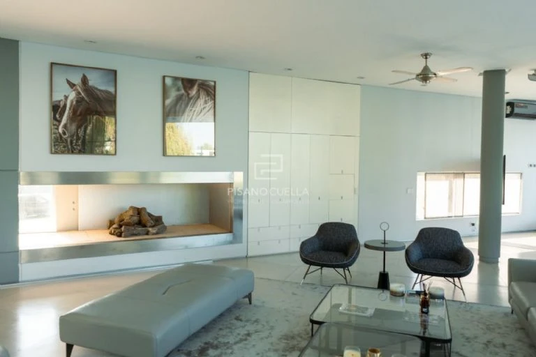 Según las imágenes publicadas por una firma inmobiliaria, al ingresar, un hall amplio conduce hacia el living principal, con ventanales de piso a techo que integran el interior con el jardín parquizado y la vista abierta al lago, uno de los grandes diferenciales del barrio. La luz natural es protagonista absoluta y potencia una decoración en tonos neutros, con detalles contemporáneos y muebles de gran porte.