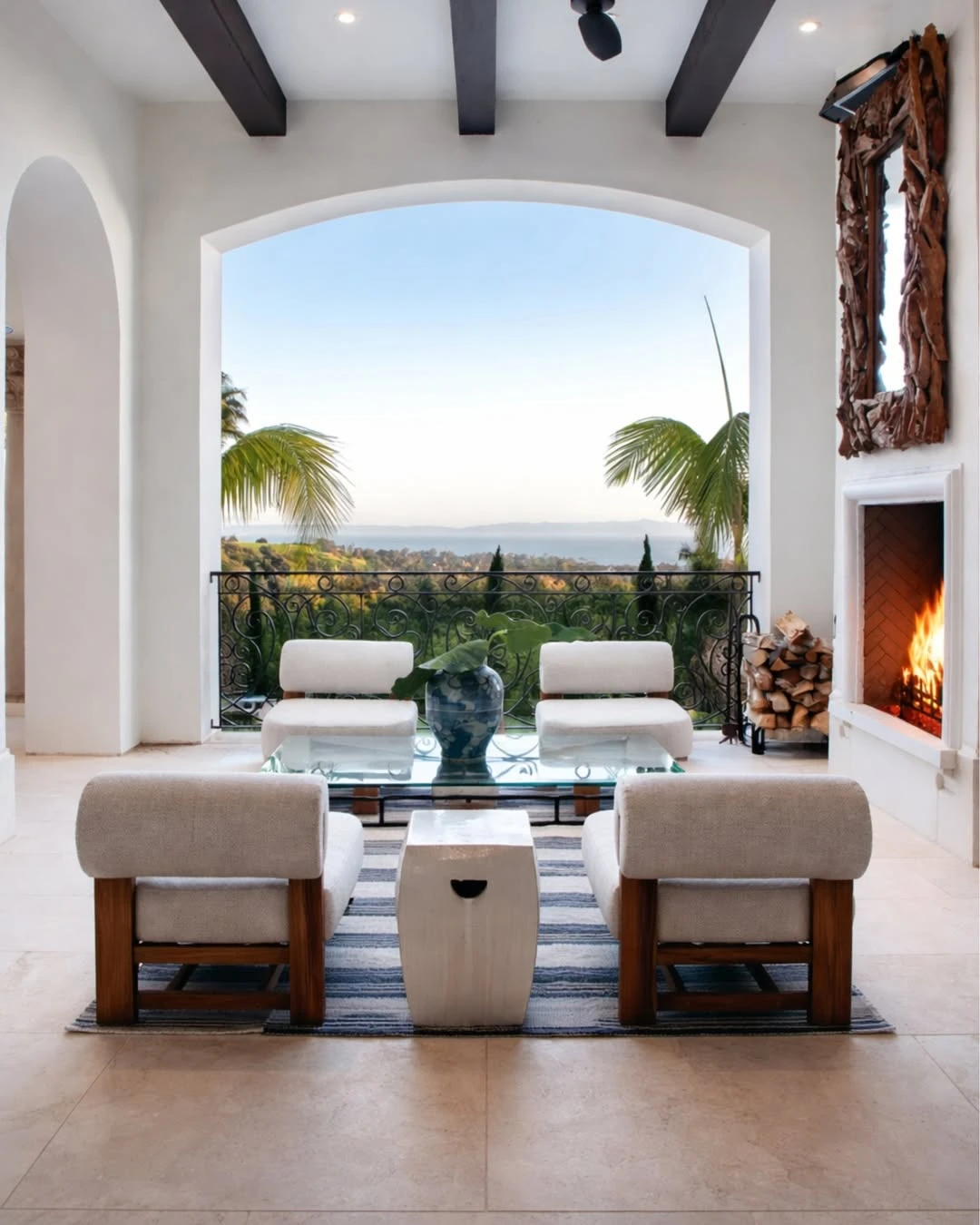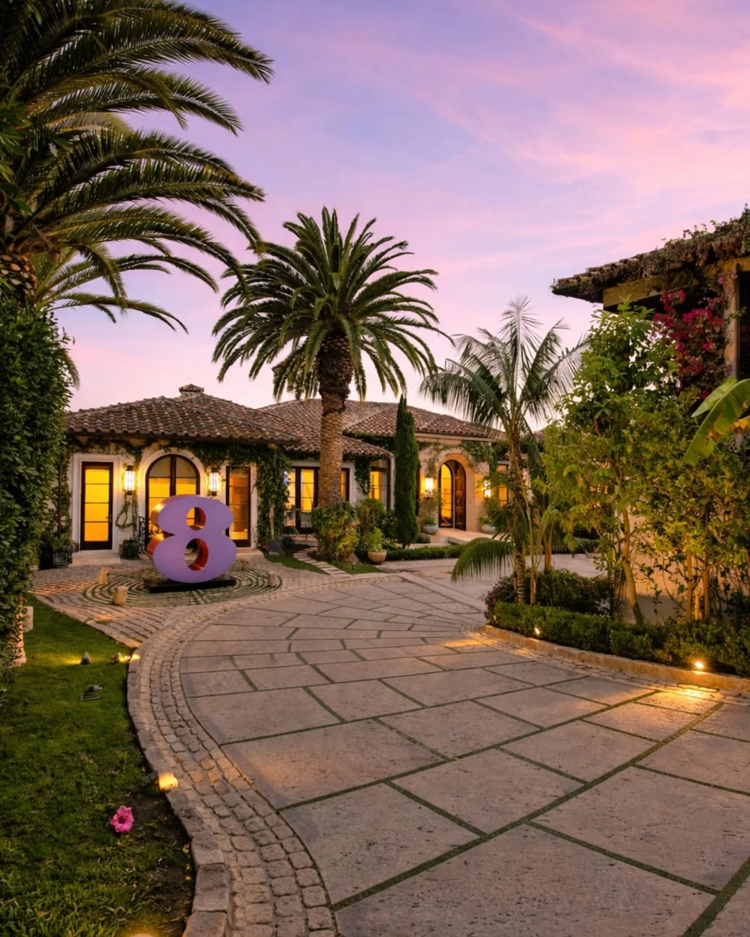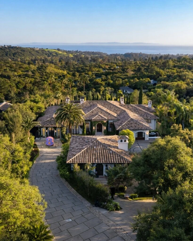 Construida en 2006 y vendida a sus actuales propietarios por 14,6 millones en 2013, la residencia abarca 13.600 pies cuadrados distribuidos en dos pisos. Su arquitectura evoca el clásico estilo español californiano: techos de teja, arcos amplios y una presencia majestuosa en medio del paisaje de Montecito.