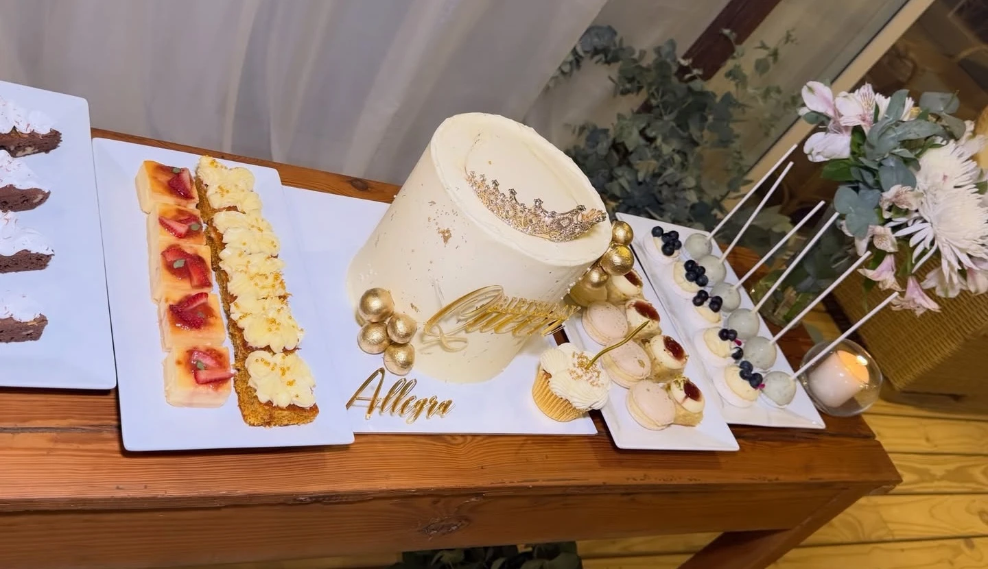 En el frente de la torta se destacaba la inscripción “Birthday Queen”, realizada en un delicado relieve dorado, junto al nombre Allegra, reafirmando el carácter protagónico de la cumpleañera pero sin estridencias. Un mensaje claro, directo y elegante, que resumió el espíritu del festejo: celebrar a la protagonista desde un lugar cálido y personal.