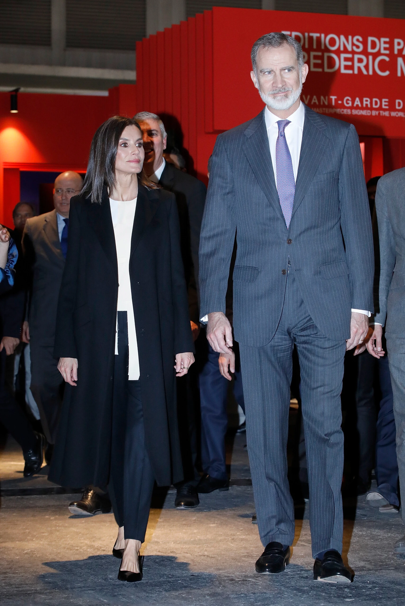 Los reyes de España presidieron la inauguración del evento que se considera imprescindible en el circuito internacional de promoción y difusión de la creación artística. Para la ocasión, Letizia Ortiz, conocida por ser adepta de la moda circular, eligió reciclar un saco negro firmado por Carolina Herrera, que complementó con unos zapatos destalonados de Adolfo Domínguez.