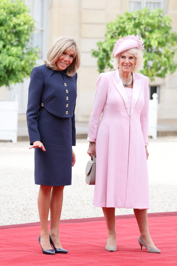 Por su parte, la reina Camilla Parker-Bowles brillaba en uno de los colores tendencia esta primavera desde la capital del amor y la moda, París: rosa palo o dentro de la gama del malva.