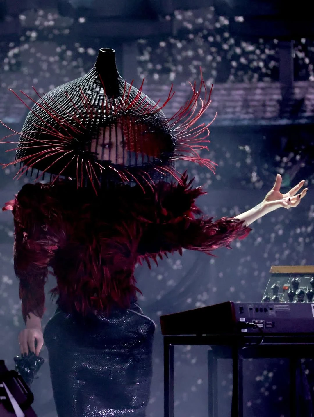La artista lució dos creaciones del diseñador británico pertenecientes a distintas etapas de su carrera. Primero apareció en escena para presentar su show de Abracadabra en versión rock con un diseño de impronta teatral y dramática. Más tarde, ya sin el tocado, subió a recibir el premio a Mejor Álbum Pop con un Alexander McQueen de la colección otoño 2009, reafirmando su histórica conexión con la estética del creador.