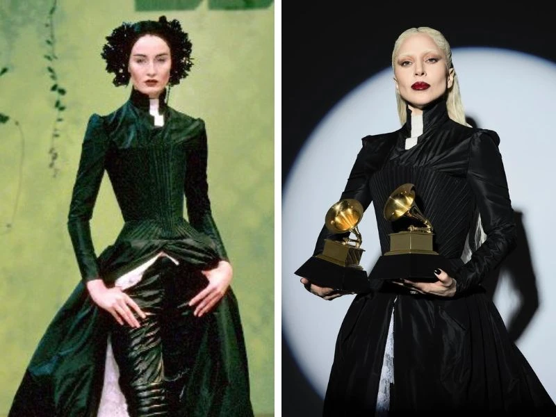 Una de las grandes protagonistas fue Lady Gaga, que convirtió su participación en los Premios Grammy en un verdadero tributo a Alexander McQueen, uno de sus diseñadores más cercanos y admirados.