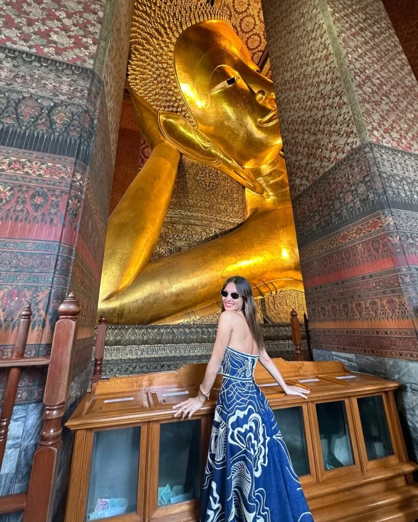 Hace unos días, Pampita viajó a Tailandia junto a algunas figuras argentinas, en el marco de su compromiso con una reconocida marca de joyas. A través de sus redes sociales, la modelo mostró el increíble look que eligió para recorrer el Wat Pho Temple.