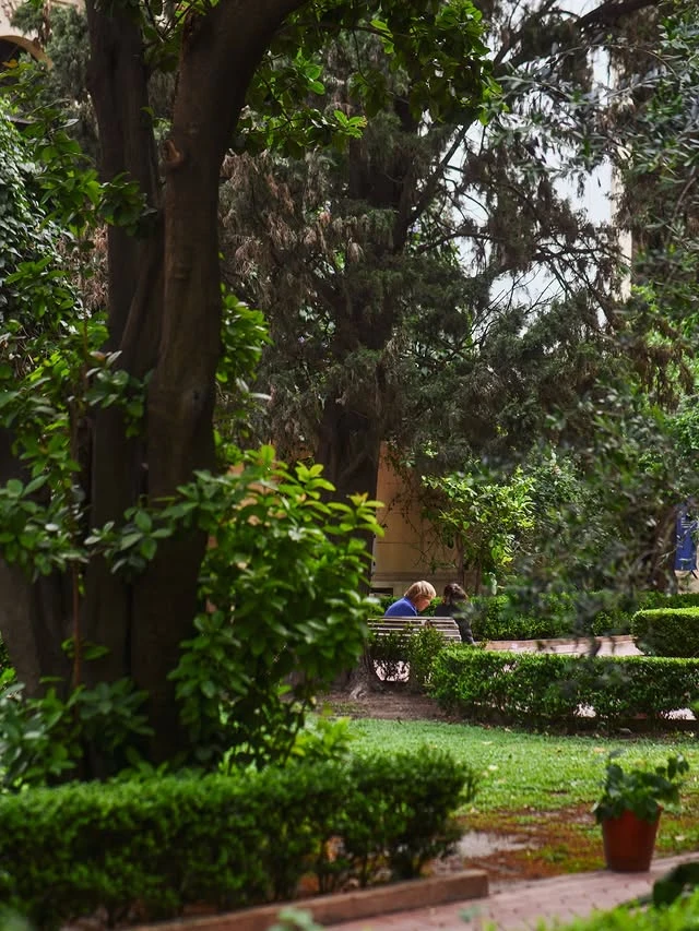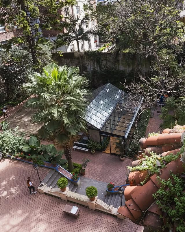 Desde afuera, el Palacio Noel no anuncia demasiado: una fachada neocolonial contenida, el tránsito de Retiro de fondo, la vereda de siempre. Pero cuando cruzás la puerta sobre la calle Suipacha, a pocos pasos de Avenida del Libertador, el ruido de la ciudad desaparece. Y entra en juego un jardín andaluz con olivos, naranjos amargos, ombúes y palos borrachos, fuentes revestidas con cerámicas de Talavera de la Reina y un aljibe de mediados del siglo XIX que resistió todo.