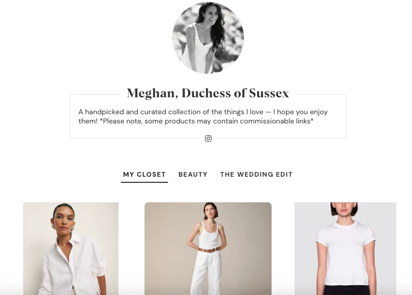 “Muchos me han preguntado y aquí lo tienen”, escribió el pasado 24 de marzo la duquesa de Sussex en Instagram, red en la que cuenta con más de 2,6 millones de seguidores. A ese anuncio lo acompañó con un link que derivaba a su perfil en Shop My.