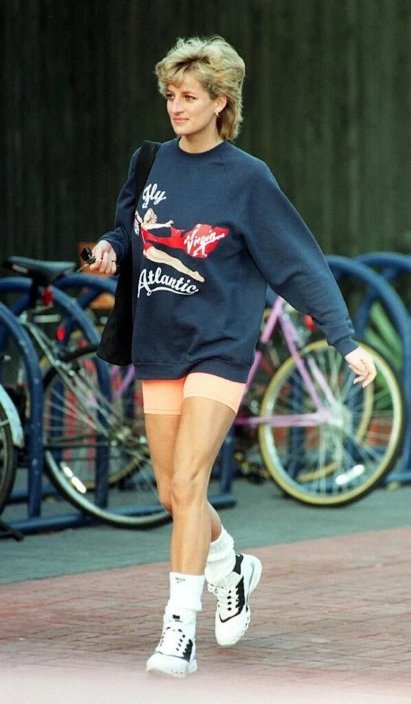 Hoy, casi treinta años después de su muerte, la combinación que Diana popularizó –sudadera oversized, shorts de ciclismo, zapatillas blancas, medias arrugadas– tiene nombre propio en las redes sociales: "Princess Diana weather". Cada vez que la temperatura baja lo suficiente para manga larga pero no tanto para pantalón largo, los posts explotan. Hailey Bieber recreó una selección de looks de Diana para un editorial de Vogue Francia en 2019.