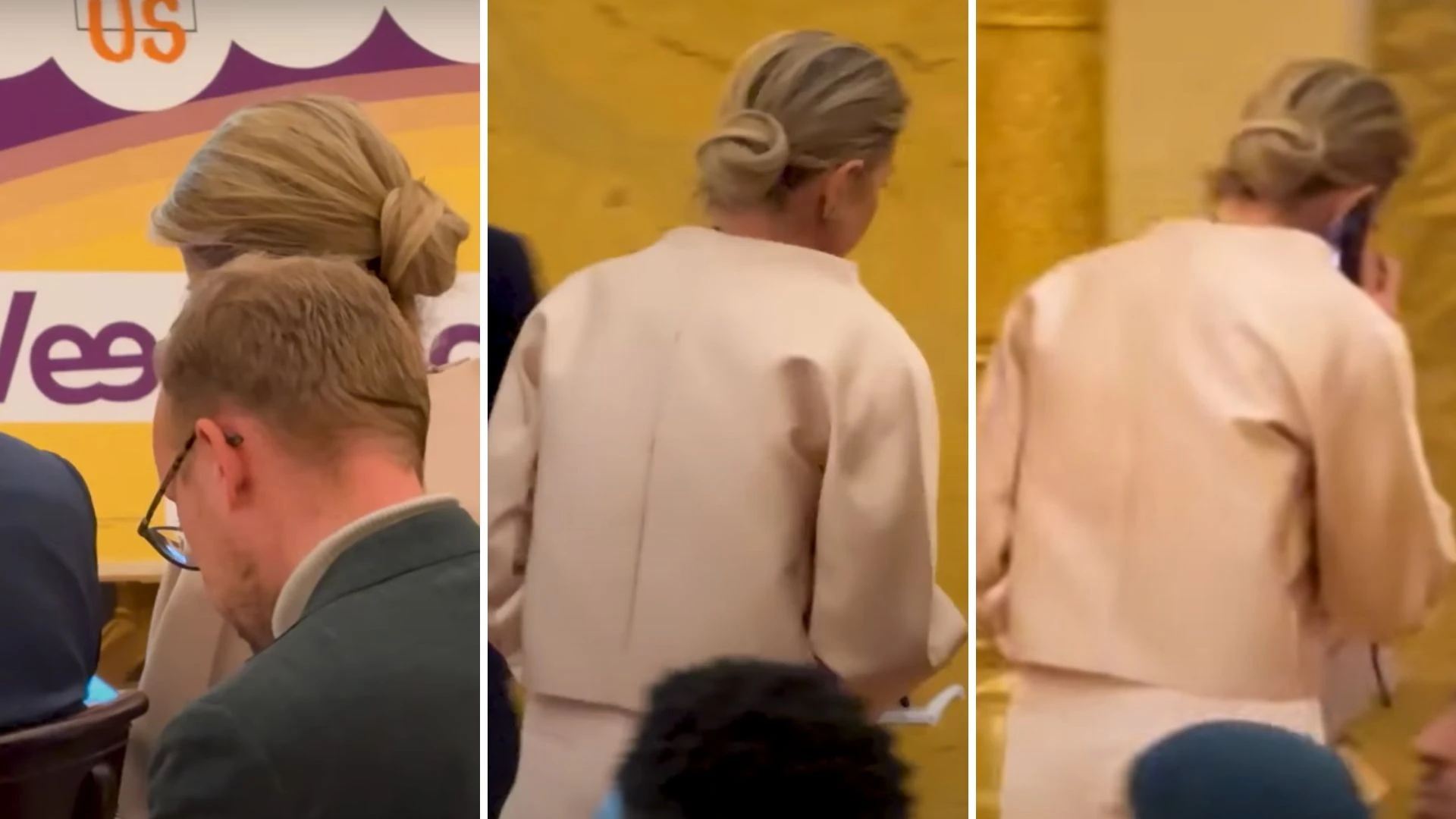 Captada por las cámaras de uno de los medios locales, Zorreguieta empezó a recibir mensajes a través de su celular, a simple vista, la preocupación se reflejó en su rostro, por lo que interrumpió brevemente su participación para realizar una llamada telefónica y obtener más información sobre el estado de su hija, seguida por su mano derecha Pien Zaaijer.