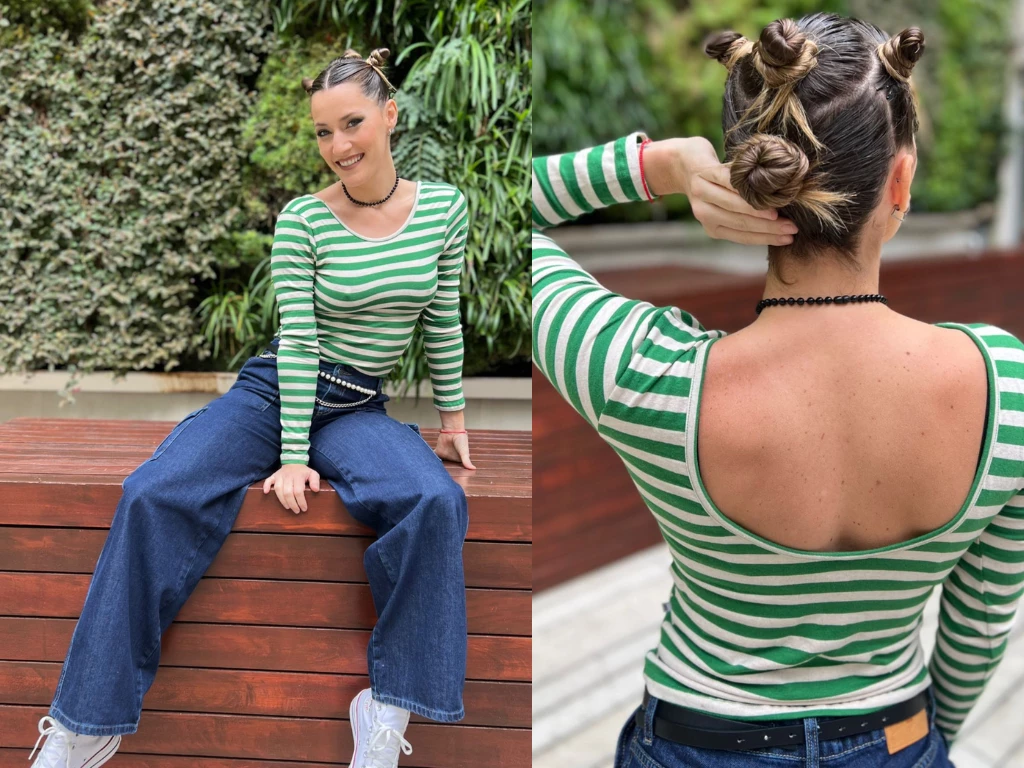 Lo mismo ocurre con sus peinados. Hace poco se mostró luciendo los famosos 'Knots' junto a un look de media estación canchero: jeans, zapatillas, remera rayada y cinturón con strass.