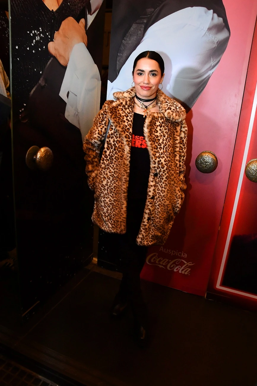 La prenda central de su outfit fue un tapado de peluche con estampado de leopardo. Este abrigo, de corte amplio y llamativo, transmitió un estilo glamoroso y atrevido, siendo el protagonista indiscutido de su atuendo nocturno. Debajo del impactante tapado, Lali lució una remera negra con letras rojas, creando un fuerte contraste.