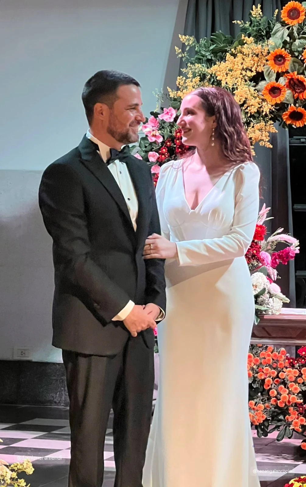 Lejos de los códigos más tradicionales, la novia decidió no llevar velo ni tocados. En cambio, eligió un ramo de flores naturales en tonos suaves, que aportó frescura visual y sumó un aire descontracturado sin perder sofisticación. Esta decisión reforzó una tendencia cada vez más presente: novias que priorizan la autenticidad por sobre lo convencional.