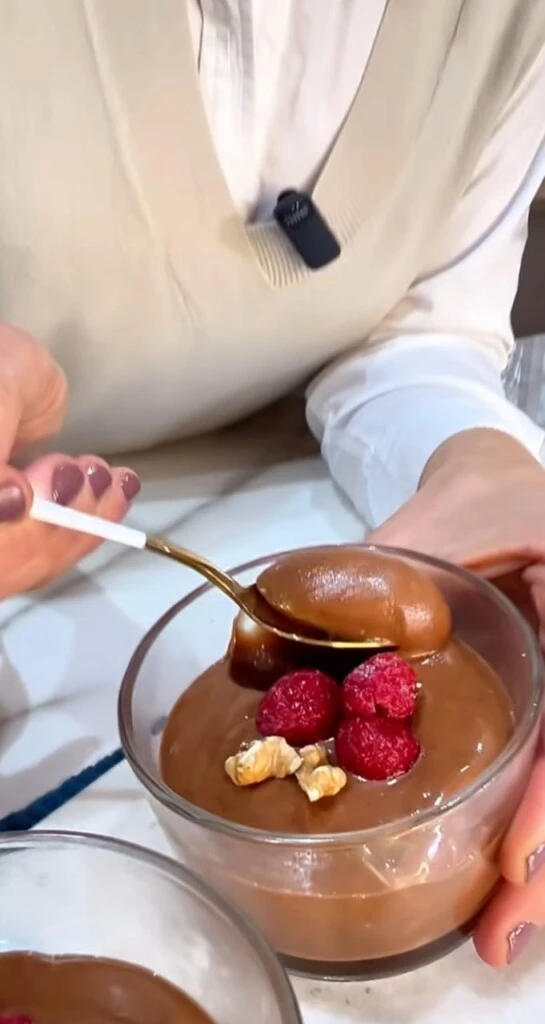 La combinación de cacao amargo, miel, pasta de maní y un ingrediente inesperado —huevo duro— da como resultado una mousse cremosa, saludable y perfecta para servir fría en porciones individuales.