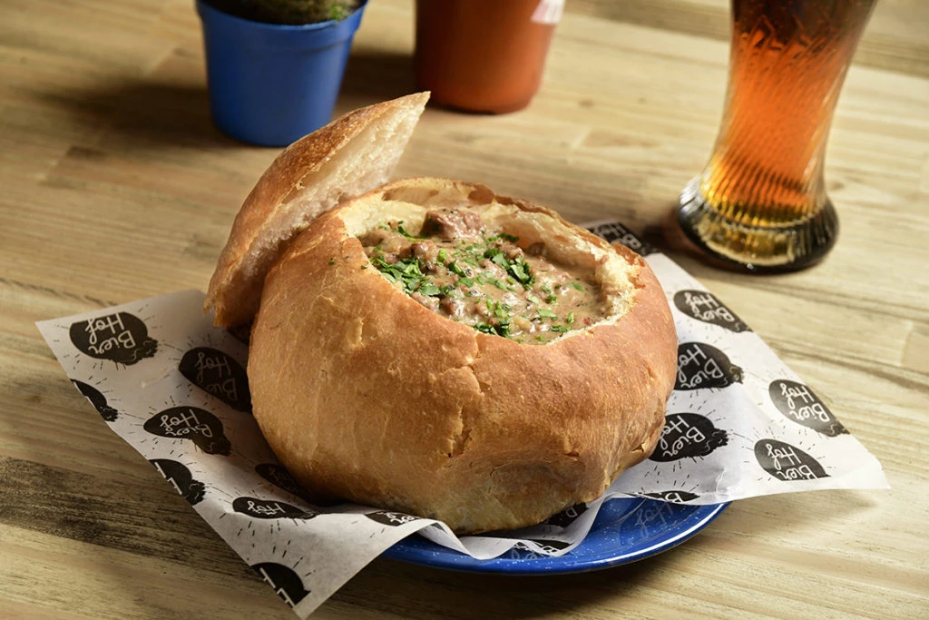 El plato: El Pan del Rey es uno de los protagonistas de la carta y estará allí solo por tiempo limitado. Se trata de un pan de campo artesanal hecho con masa madre, ahuecado y relleno de un suculento Strogonoff con carne de ternera, cebollas, caldo casero y crema de leche. Ideal para disfrutar con unas copas de vino tinto o unas pintas de cerveza negra. También lo hacen relleno de sopa de cebollas y de fondue de queso con calabaza.