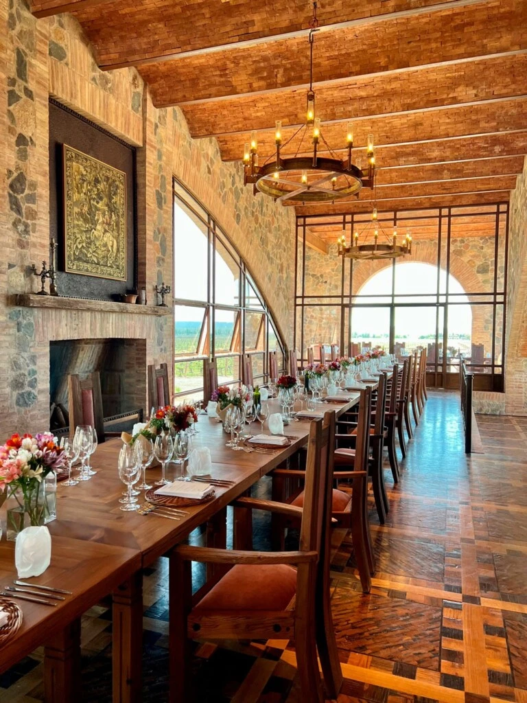 Ubicado en la bodega Catena Zapata (Agrelo, Luján de Cuyo), este comedor de piedra y vidrio encarna el concepto Wine First (donde el vino es el protagonista)