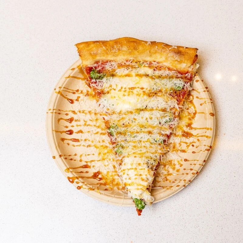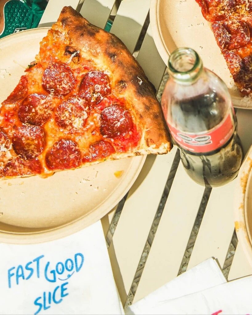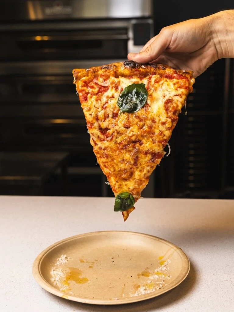 Para los que buscan emociones fuertes, la Pepperoni Slice ($7.900) propone un viaje directo a Manhattan con un toque secreto que ya es marca registrada: hot honey (miel picante). Y finalmente, la joya de autor: la Kalis Slice ($8.200), que eleva la vara con pesto, burrata cremosa y un zest de limón que limpia el paladar.