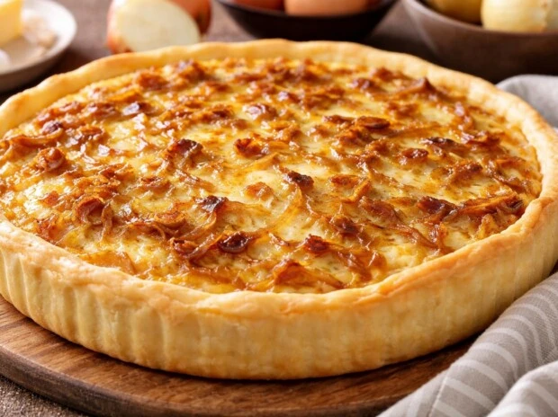 La tarta de queso y cebolla caramelizada es una versión más levantada de un clásico que nunca falla. Combina el dulzor suave de la cebolla bien cocida con un relleno cremoso que se derrite en la boca, ideal para una comida distinta sin complicarse demasiado.