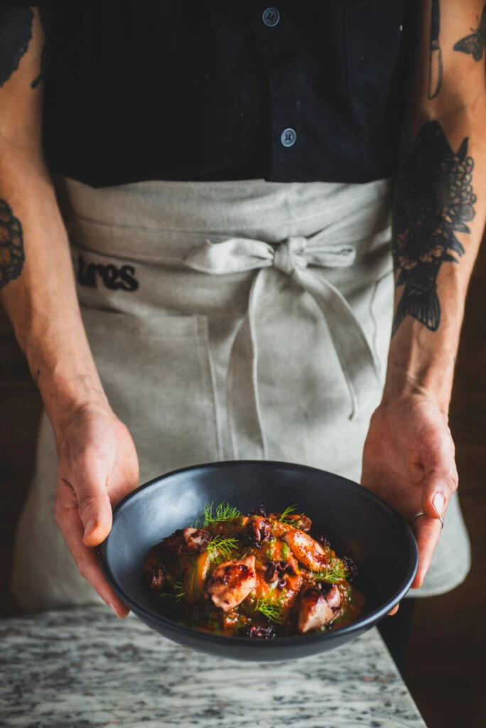 El menú sorprende con creaciones como los girasoles rellenos de maíz dulce y morrones asados, con manteca tostada infusionada. Destacan también el Cacio e Pepe con mollejas braseadas y ahumadas, bañadas en salsa demi glace, y los dumplings de langostinos en caldo de calabazas ahumadas. Las opciones varían según la frescura de los productos.