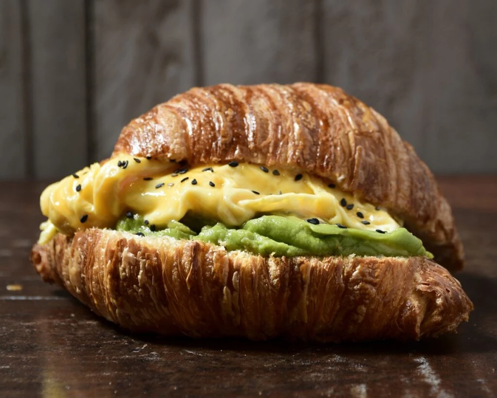 “Ya con el croissant listo -dice Bruno- se pueden hacer un montón de cosas. Se puede comer así, dulce o salado. Es súper versátil. Tenemos una versión vegetariana, con huevo revuelto y palta ($5.200); otra con jamón y queso ($3.500); la clásica ($2.000); y vamos a agregar una con pastelera y almendras fileteadas”.