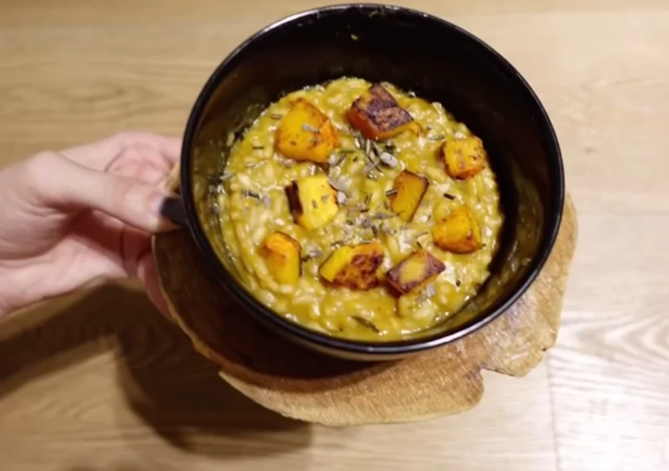 Según se comenta, el origen del plato fue responsabilidad de un joven buscaba impresionar a los invitados a su boda con un "caldo de oro" hecho en base a una sopa de arroz teñida con hebras de azafrán, dando así origen al Risotto alla milanese, que luego derivaría en versiones como Risotto ai gamberetti, Risotto ai funghi porcini, Risotto al parmigiano, Risotto al radicchio, Risotto agli spinace, Risotto frutti di mare y, claro, Risotto di zucca, en el que sus granos se tiñen igualmente de un brillante amarillo, pero en base a la calabaza, un ingrediente usualmente a la mano del campesinado del norte de Italia. Sí, el Risotto di zucca que hoy nos invitan a disfrutar los Bullrich.