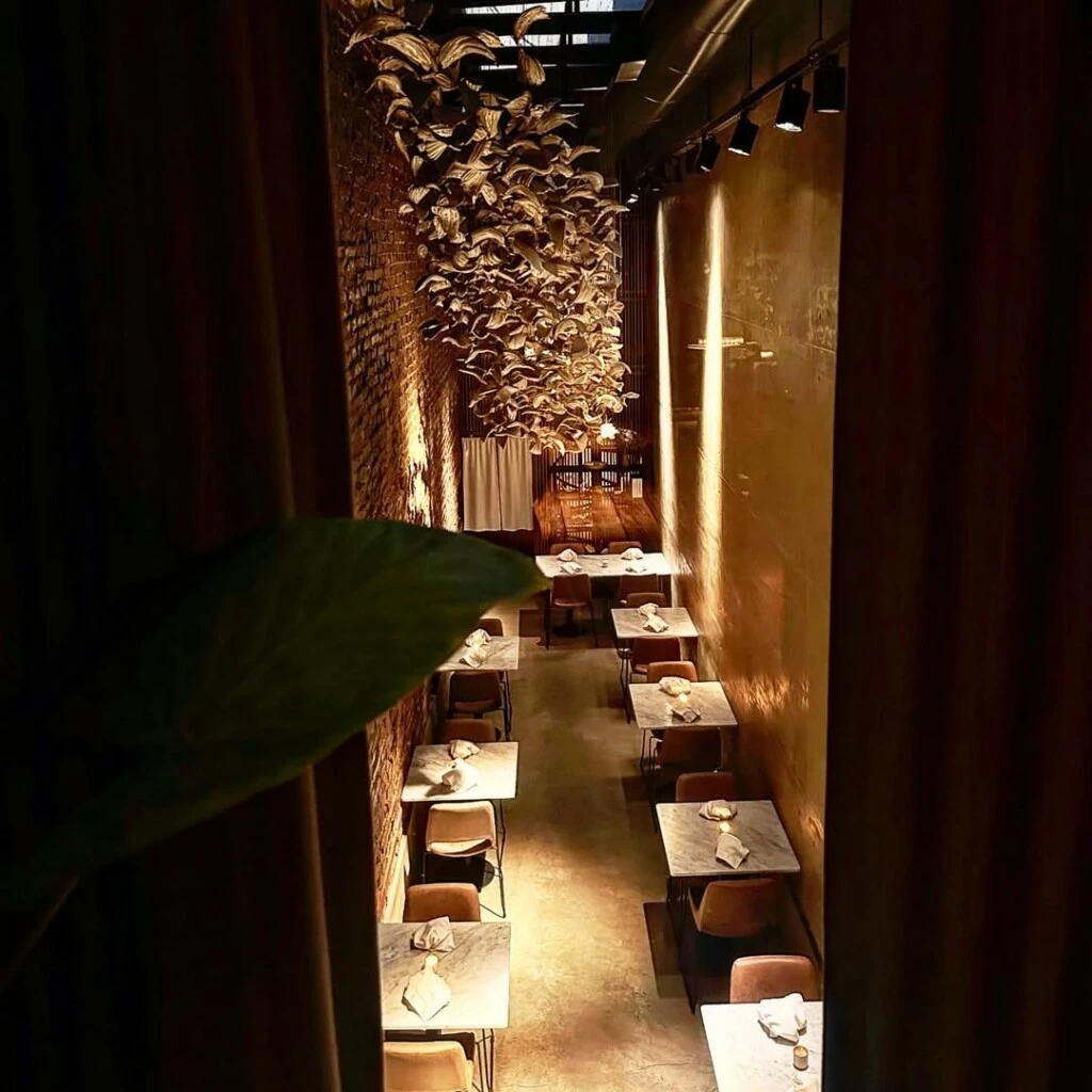 El Papagayo, el restaurante que Javier comanda en Arturo M. Bas 69, Ciudad de Córdoba, es bastante curioso: funciona en un pasillo largo y angosto (de 2 metros de ancho y 32 metros de largo) y le brinda la posibilidad a 36 comensales de catar un menú degustación sin igual bajo una obra de arte de mil quinientas piezas que evoca el vuelo de los pájaros.