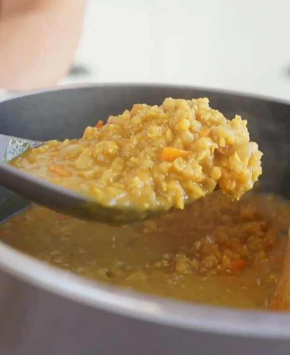 Junto a un video en el que mostraba cómo lo hacía, reveló los ingredientes que lleva el plato, para que coman entre 5 y 6 personas. "500g de lentejas turcas. 1 cebolla grande picada en brunoise. 1 zanahoria grande en brunoise. 3 tomates, sin semillas, en cubitos. 1/2 chile, a gusto. 1 diente de ajo rallado. 1 cucharada de jengibre rallado. 1 cucharada de garam masala. 1/2 cucharada de cúrcuma. 70cm3 de leche de coco. 700cm3 de caldo de verduras. Provenzal. 1 diente de ajo picado. 1/2 paquete de cilantro picado. Gotitas de jugo de limón. Sal a gusto", detalló Pachano.