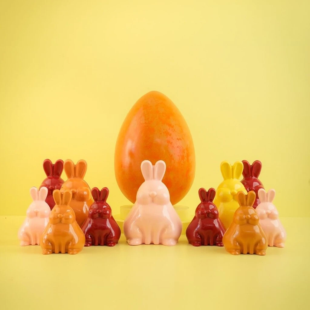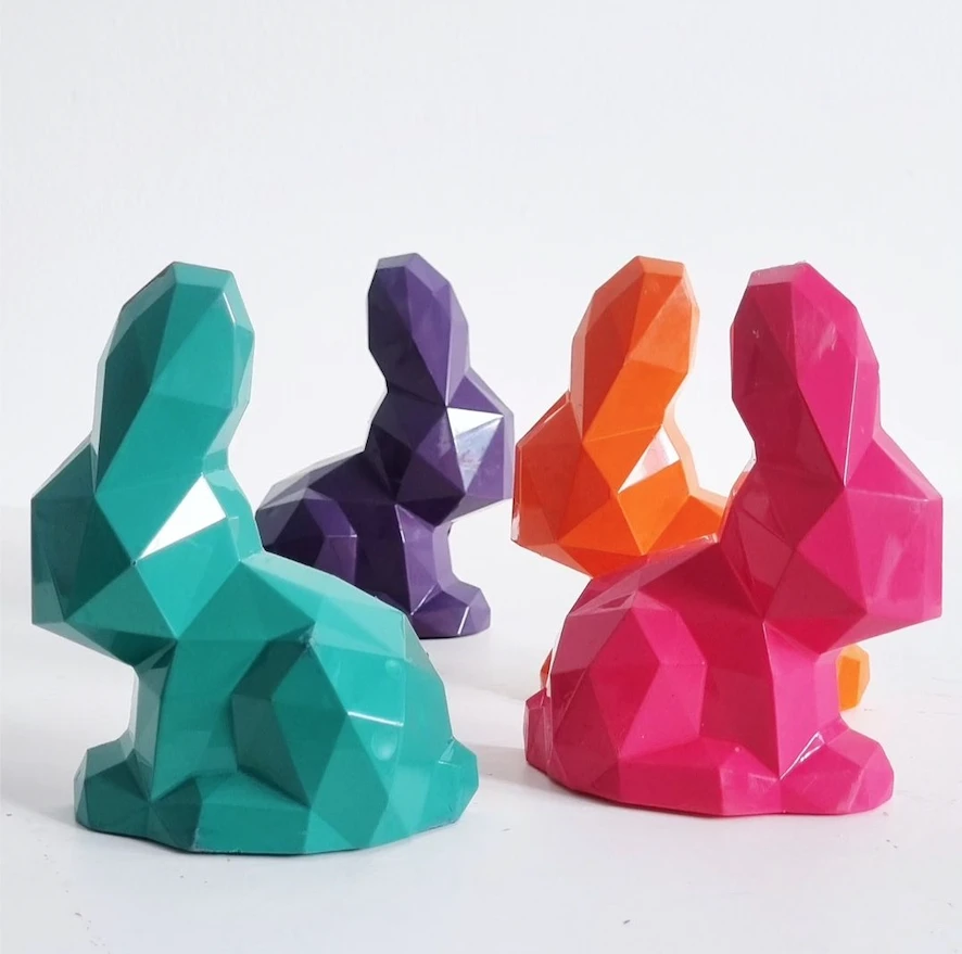 La casa de chocolates que nació del amor de una pareja y que tiene su taller de producción en Versalles, CABA, presenta sus coloridos conejos de Pascua Origami forjados a partir de moldes de ChocolateWorld (oriundos de Bélgica).