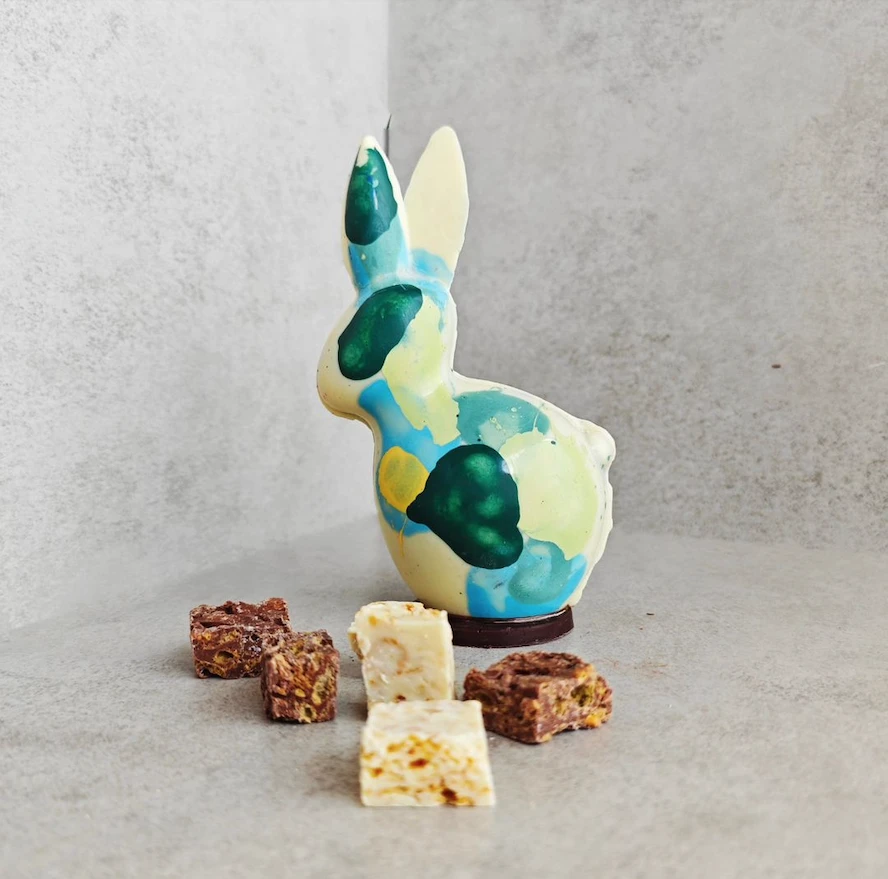 Desde Aguirre 1570, Villa Crespo, llega unos conejos absolutamente artísticos. Están hechos con chocolate con leche y en su interior tiene bocaditos de chocolate con cereales.