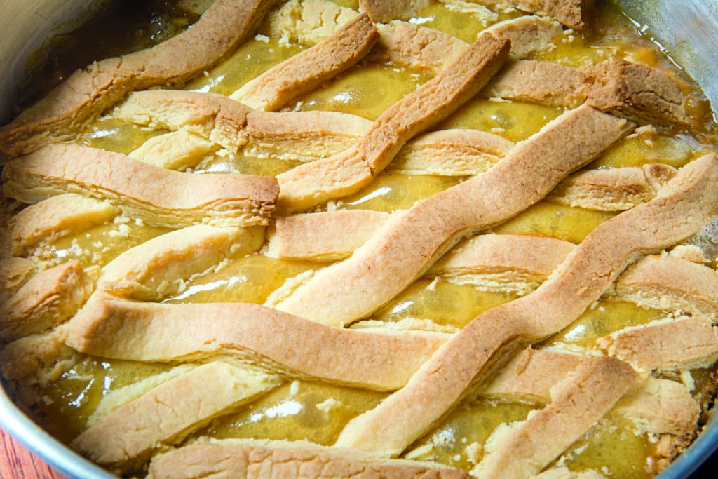 "Para la masa, usé 400 gramos de mi harina –tiene una línea de harinas–, 180 gramos de manteca, dos yemas, una cucharadita de bicarbonato, siete cucharadas de azúcar y un poco de esencia de vainilla. Puse la base, la extendí bien, y le di una pre-cocción en el horno durante veinte minutos, ya que me gusta que quede bien crocante. Cuando la tuve lista, le sumé dulce de batata, y encima coloqué las tiras de masa entrecruzadas. ¡Nada más! Al horno, a esperar otros veinte minutos, ¡y listo!", confío con la confianza que la caracteriza.