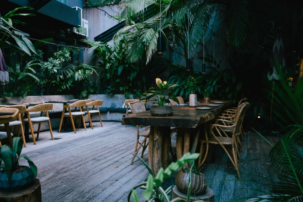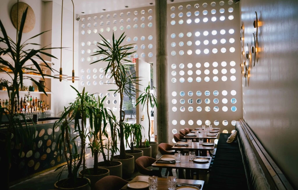 Llegamos a Sacro, lugar que deslumbra con su gastronomía distinta en el barrio de Palermo Hollywood. Su local llama la atención por su vistosa fachada en tonos blancos, con llamativas perforaciones circulares que crean contrastes y aportan luminosidad. Al entrar, te perdés en un interior lleno de vegetación que transmite una sensación de estar en el medio de la selva.