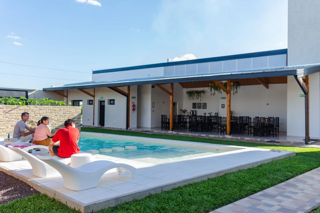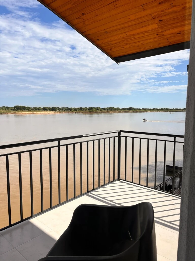 Entre las áreas de uso común, destacan su piscina con vista panorámica que permite a los huéspedes disfrutar de una vista del entorno natural que abraza a Ogaraity. Como así también su terraza con vista al río en el que los atardeceres se esconden tras las islas que se alzan frente al apart.