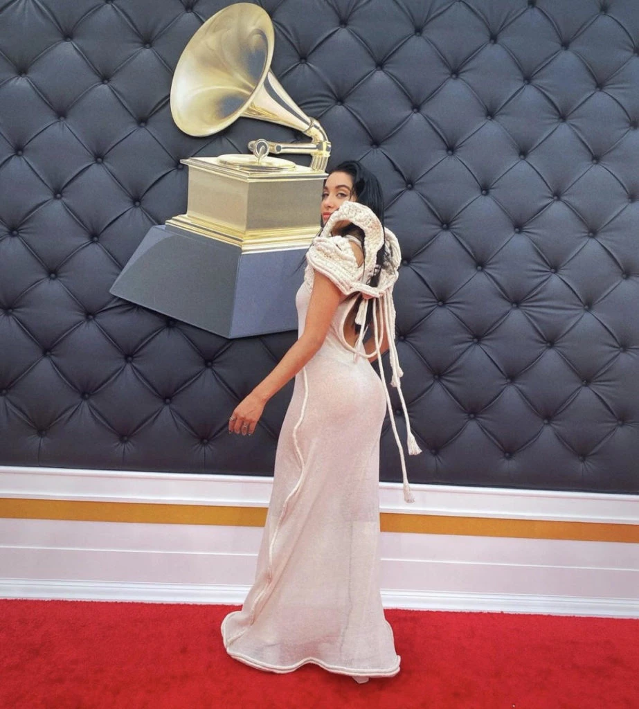 La entrega de los premios se realizó anoche en Las Vegas y María Becerra llevó un vestido en color marfil, traslúcido, con una perchera sobre los hombros tejida en crochet. Se trata de un diseño de Emilia Velasco, diseñadora chaqueña, y generó un gran impacto en la red carpet.