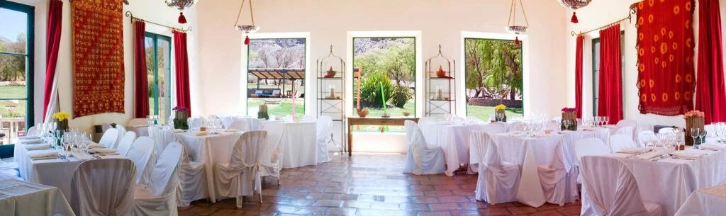 Subiendo por la ruta Nacional 52 (a tres minutos en auto o doce minutos caminando de la plaza principal) se encuentra El Manantial del Silencio, un lindo hotel de estilo neocolonial con techos altos y grandes ventanales que en su restaurante ofrece varios de los mejores platos del norte de nuestro país.