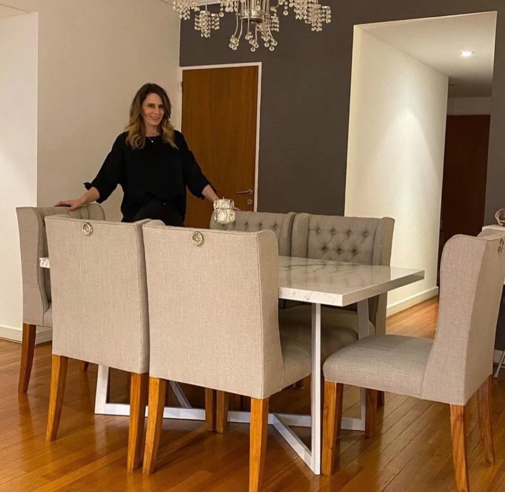 Rocío Marengo vive en una hermosa casa de estilo clásico -pisos de madera, araña con caireles de cristal y un juego de mesa con tapa de mármol y sillas alta con capitoné- que son un reflejo de la personalidad de la modelo: ella es mucho más clásica y tradicional de lo que algunos creen.